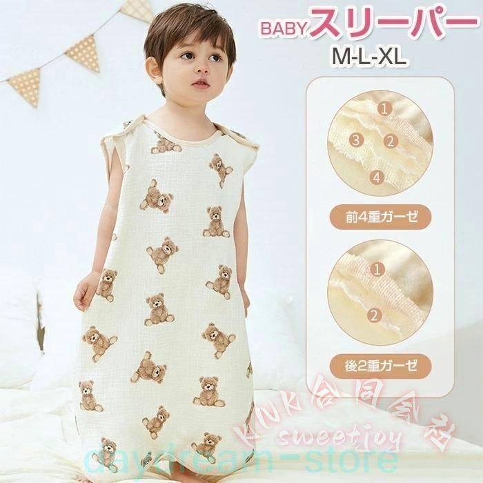 スリーパー 夏 キッズ 幼児 ガーゼ コットン 2重ガーゼ 4重ガーゼ 股スナップ付き 綿100% 部屋着 寝具 パジャマ 寝巻 通気性抜群