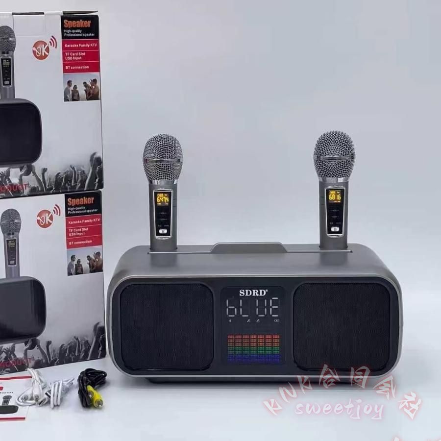 家庭用カラオケマイク2本付き高音質Bluetoothセット KNK(株) USBスピーカーおうちカラオケデュエット練習一人カラオケLEDライト多機能マイクセット