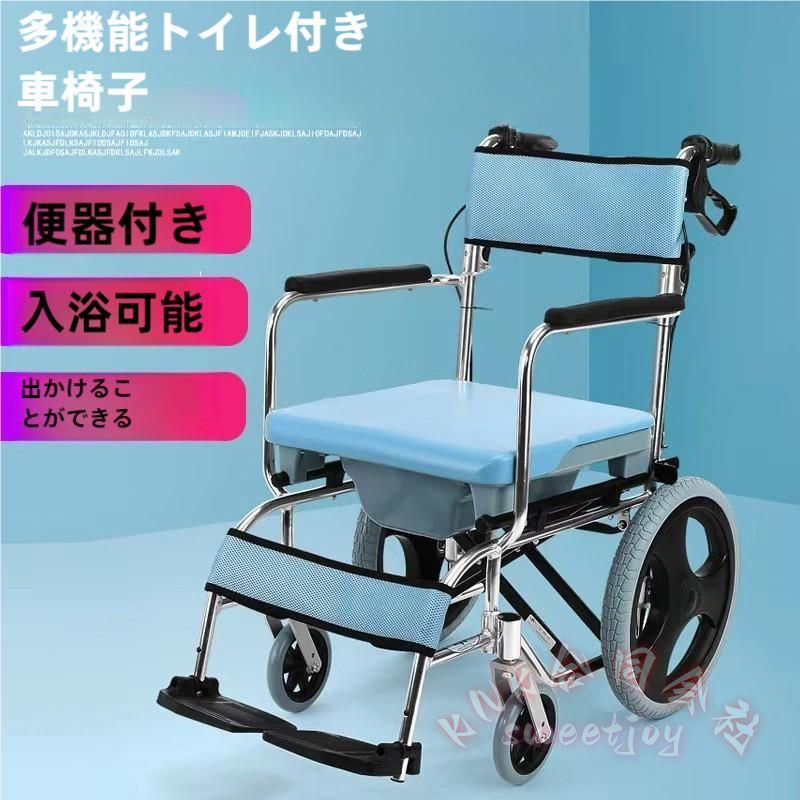 入浴車椅子 折りたたみ ノンスリップ KNK(株) トイレ椅子兼用 シャワースツール ベルト/ホイール付き 高齢者/妊婦/障害者 モバイルトイレ