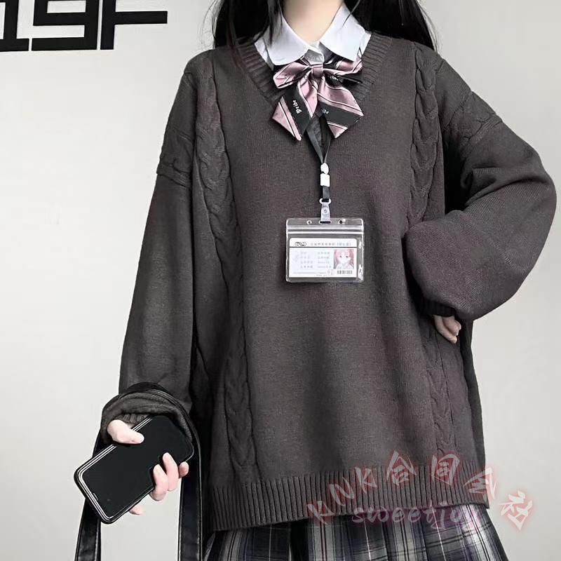 スクールセーター Vネック レディース ニット 可愛い ケーブル編み セーター 通勤 通学 学生 高校生 KNK(株) スクールニット 無地 定番 洗える あったか