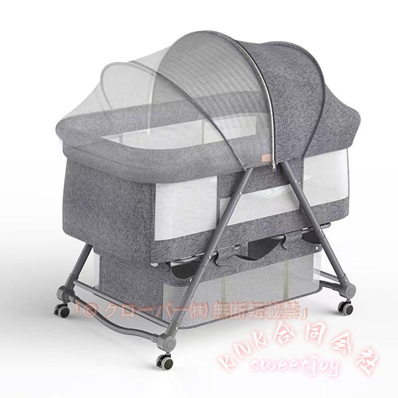 ベビーベッド 添い寝 折りたたみ SGS認証 KNK(株) ミニ 新生児0ヶ月~2歳 キャスター付き ゆりかご 収納袋 蚊帳付き 出産祝い