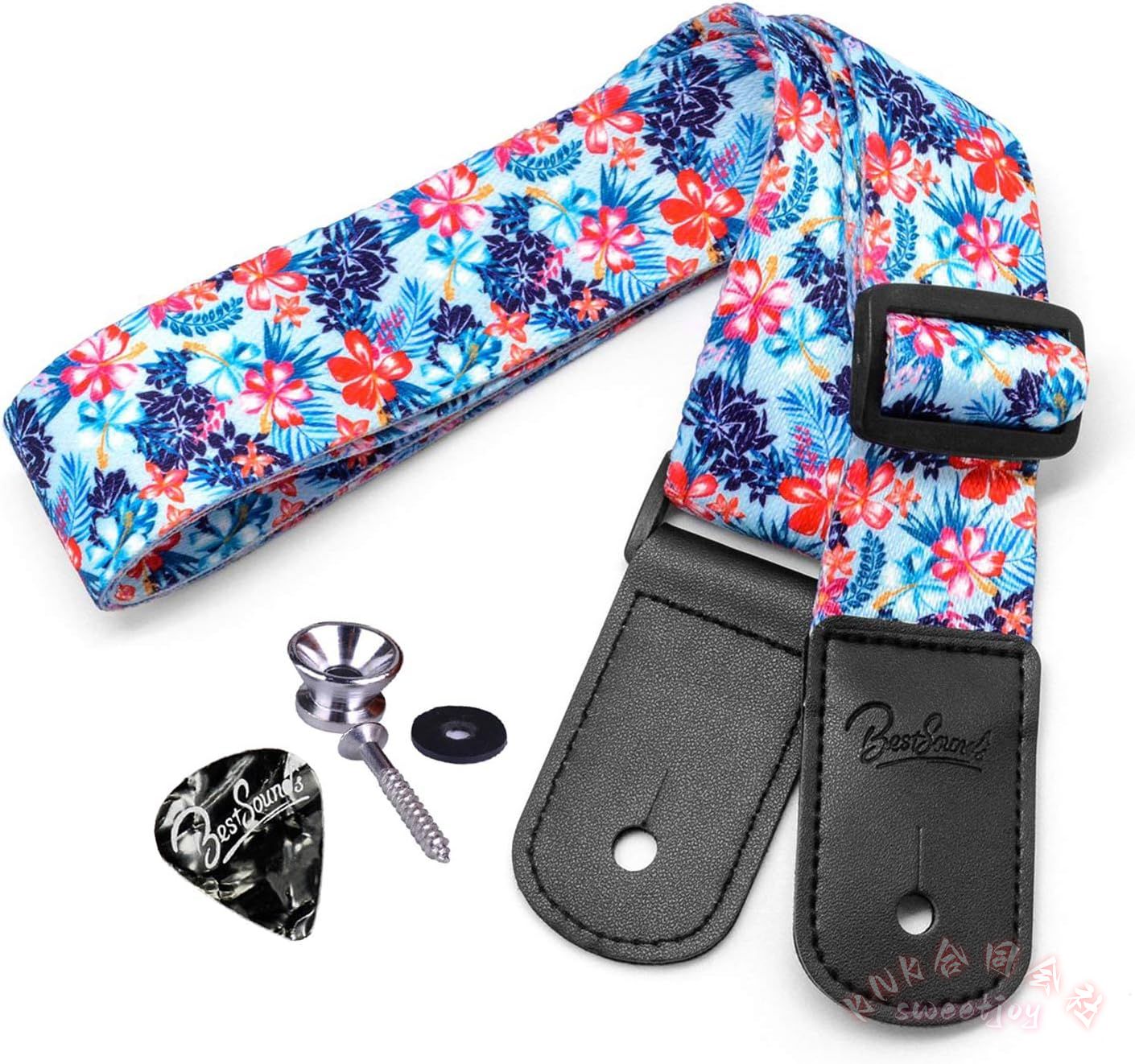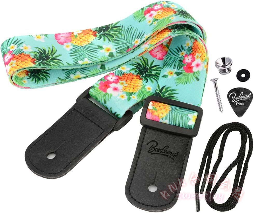ウクレレストラップ フラダンス柄 金属バックル KNK(株) ウクレレショルダーストラップ ブルー 軽量 長さ調整 ライブ 発表会 練習用