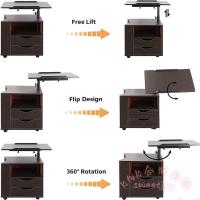 サイドテーブル 昇降式 ベッドテーブル KNK 可移動デスク キャスター付き 収納棚付き ナイトテーブル ソファーサイド ベッドサイド 高さ調整 在宅ワークにも便利