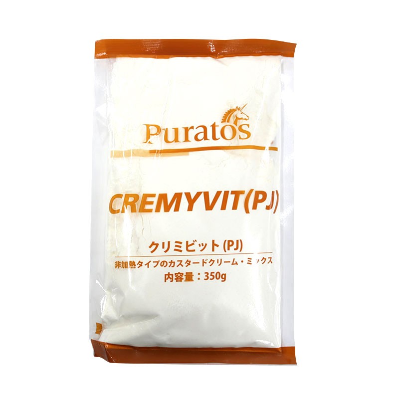 | 基本配合 | 牛乳(1,000ml)にクリミビット(1袋350g) ※必ず牛乳にクリミビットを加える手順で混ぜ合わせて下さい。(反対はダマのもとになります) |