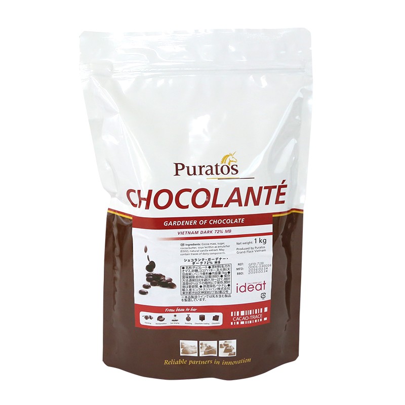 カカオ分72%(カカオマス62%,ココアバター分10%)