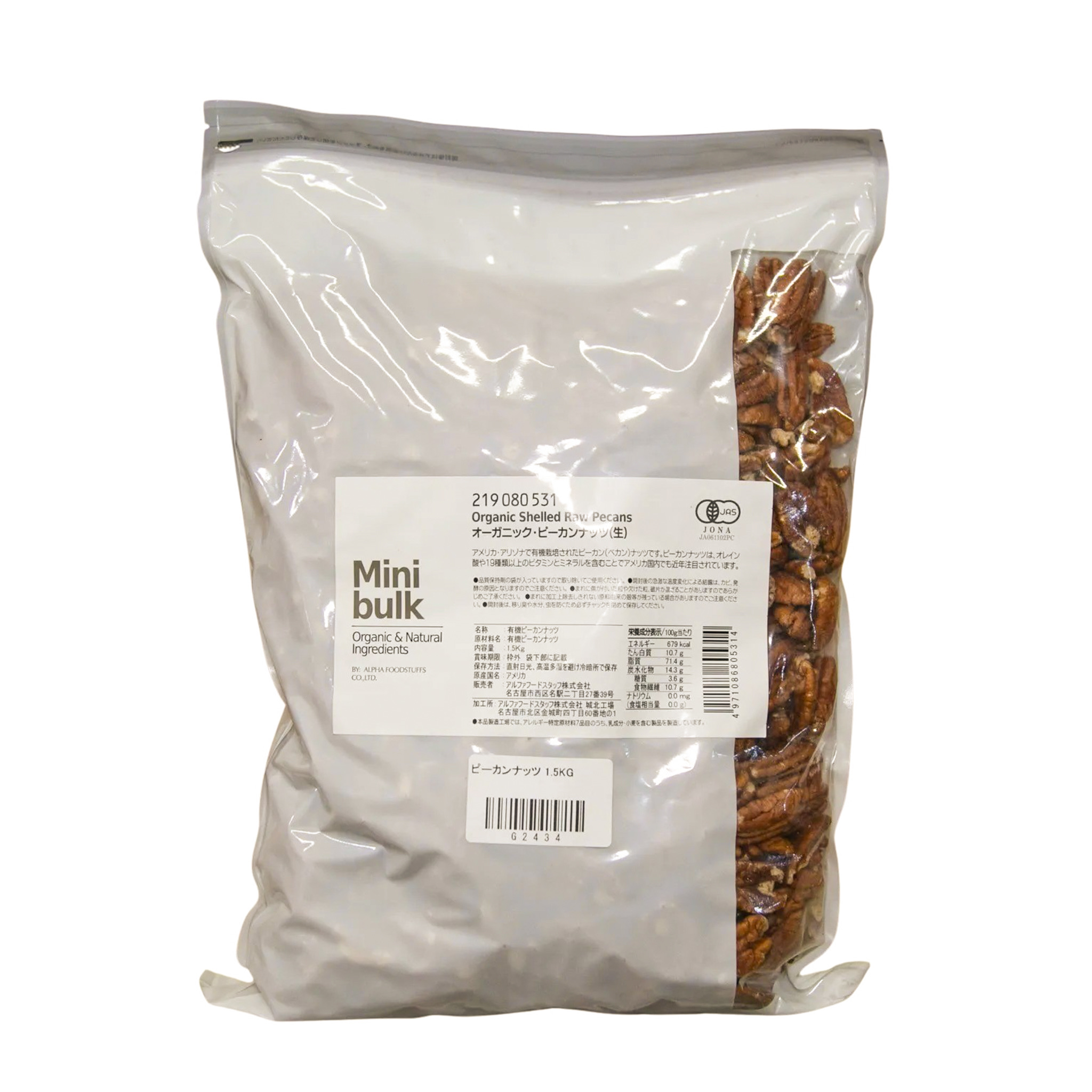 | 概要 | 特徴 オレイン酸や19種類以上のビタミンとミネラルを含むことで,アメリカ国内でも近年注目されています。 渋みが少なくまろやかな味で、グラノーラやチョコレート、パン、焼き菓子など広い用途にお使いいただけます。 お取り扱いの注意 原料生産地圃場からは様々な不純物が運び込まれます。 製造では選別工程を経ておりますが、原料由来の異物をはじめ、その他の様々な種類の雑穀片など完全には取り除けない不純物が残留している場合があります。 このような原料の性質をご理解頂き、残留物がある場合は取り除いてご使用ください。 商品の包装について 賞味期限以外の情報は、表面のラベルに明記しております。包材は、PE、PA貼り合わせのガスバリアー性の高い物を使用、原料の特性に応じて脱酸素剤や乾燥剤を使用しております。 賞味期限は枠外(袋下部)に記載してあります。開封後は、チャックを閉めて保存し、賞味期限に関わらずお早めにご使用下さい。 有機JAS認証機関 JONA 主な用途 製菓、製パン全般でご使用いただけます。 |