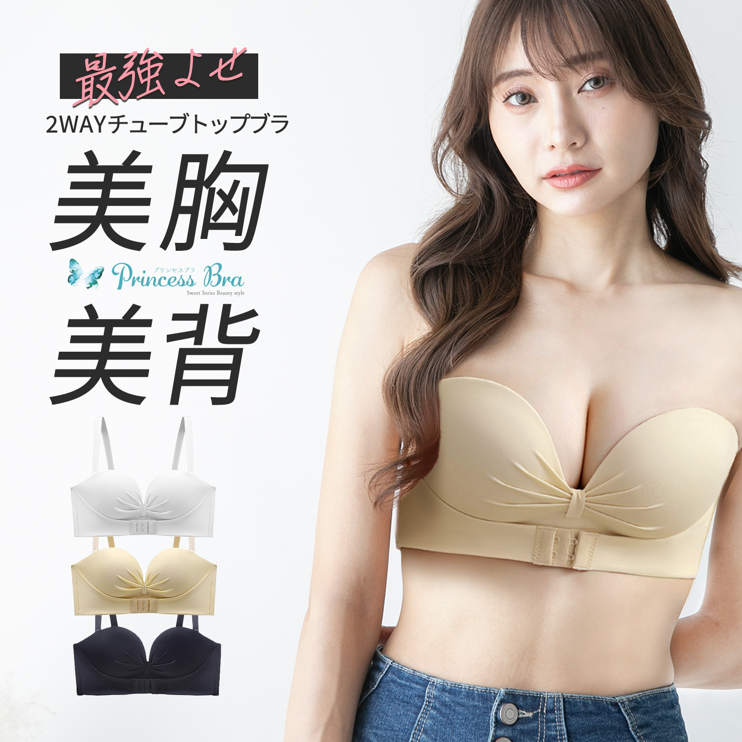 \期間限定価格/ ストラップレス ブラ ブラジャー ずれない 紐なし チューブトップ ヌーブラジャー 脇高 脇肉 補正 ノンワイヤー シームレス バンドゥ