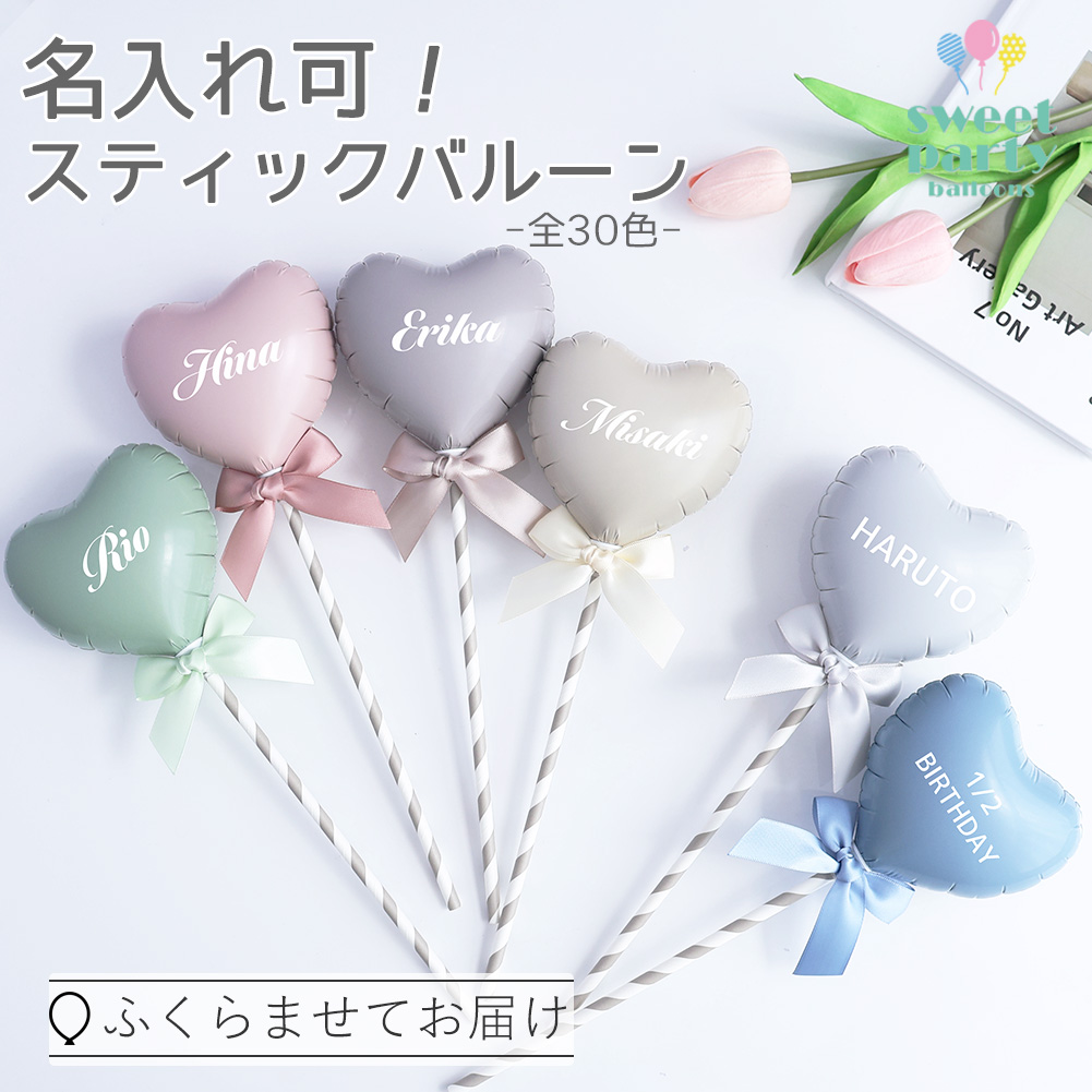 【New!名入れ可 ハート スティックバルーン ふくらませてお届け!】