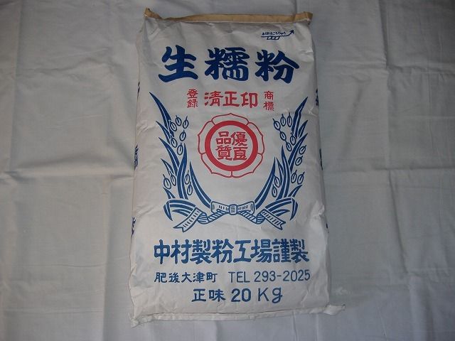 もち米を洗って乾燥させ、粉末にしたもの。国産もち米100%使用。大福餅(いちご大福、豆大福等) あん餅、草餅等に使われます。*画像は20kgの荷姿です。原材料:もち米(熊本産100%)アレルギー:無栄養成分表示:(100gあたり) エネルギー 325kcal たんぱく質 4.2g 脂質 0.8g 炭水化物 50.3g ナトリウム 2mgこの表示値は目安です。