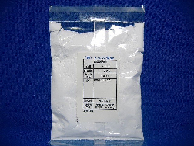 加熱すると炭酸ガスと水が蒸発してナトリウムが残り、この炭酸ガスと水の作用で生地が膨らみます。 膨張力が最も強いので焼き菓子に用いられます。あく抜きやお菓子づくり等にご使用いただけます。 また、クッキーなどを作る時のふくらし粉としても使用されています。ニオイ消し、洗浄剤、お料理に、その他、はみがき粉、うがい等にもお勧めです。クエン酸と1対1で混ぜると炭酸水も作れます。画像は100gの荷姿です。栄養成分表示:(100gあたり) エネルギー 0kcal たんぱく質 0g 脂質 0g 炭水化物 0g ナトリウム 27,400mg カリウム 1mg以下 カルシウム 5mg以下 マグネシウム 0.1mg以下 鉄 0.02mg以下 亜鉛0.01mg以下 銅0.02mg以下 マンガン0.01mg以下 食塩相当量 69.6gこの表示値は目安です。