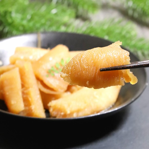 原材料:数の子(ロシア、アメリカ、カナダ産)加工は北海道、発酵調味料、鰹節エキス、蛋白加水分解物、醤油、昆布エキス、食塩、調味料(アミノ酸等)、ソルビート、酒類、ph調整剤(原料の一部に大豆、小麦含む)
