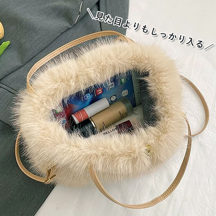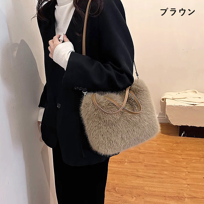 [全品11%オフCP!24H限定]ファーバッグ レディース バッグ エコファー ふわもこ 2WAY トートバッグ フェイクファー マグネット ショルダー 斜めがけ[郵3]bm1547^