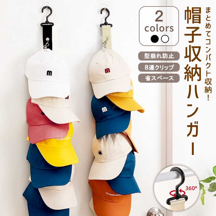 [990円〜]帽子ハンガー クリップハンガー 吊り下げハンガー 帽子 8連 1個 2個セット クリップ クローゼット 壁掛け 縦型収納 見せる収納 ネクタイ 靴下^bm1581^