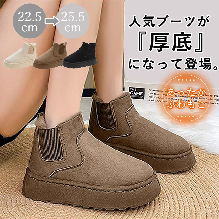 [1785円!クーポンで]ムートンブーツ サイドゴア ブーツ レディース ショート ボア 厚底 ファー シューズ 靴 防寒 極暖 (送料無料)^bo-931^