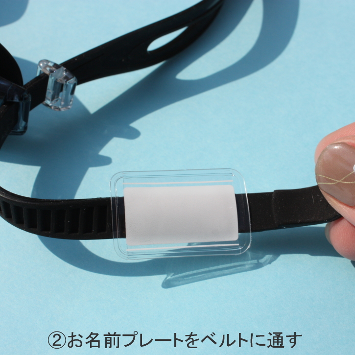 スイミングゴーグル専用のお名前プレート。学校やスポーツクラブでの紛失や間違いを防いでくれます。