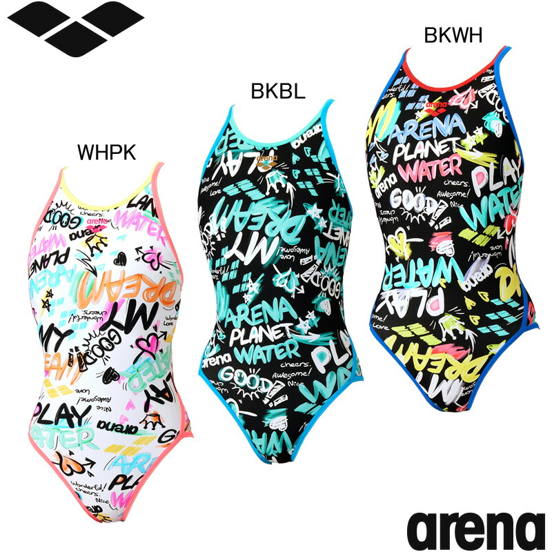 | 特 徴 | トレーニングカテゴリー「TOUGHSUITシリーズ」 大会に向けて練習を重ねる頻度が高いスイマーにオススメの練習用水着 環境に配慮したリサイクルポリエステル素材「タフスキンEP」を使用し塩素に強く長持ち ポップな文字表現で鮮やかなデザイン 落書きをしたノートのような手書きタッチのロゴや、水彩ペンで描いたような立体感のあるグラフィックが特徴 みんなの夢を描いた寄せ書きのような、温かみと楽しさあふれるデザイン 前身頃、後身頃に黒の裏地付き ワンピースタイプ |