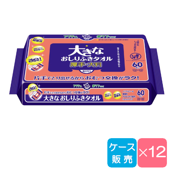 おしりふき 介護 厚手 大判 シールふた付き アクティ 大きなお尻拭きタオル 60枚×12