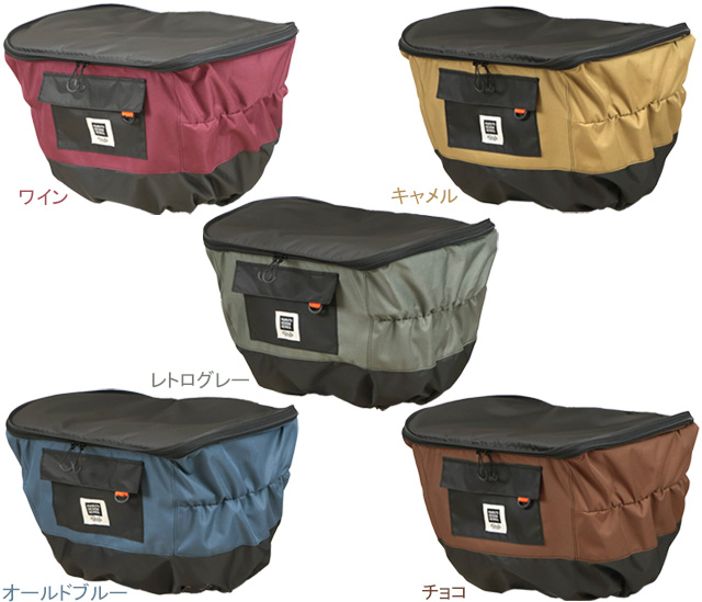・カゴにカバーを被せて紐と面ファスナーで簡単に取り付ける事が可能・ヘルメットの収納にも最適