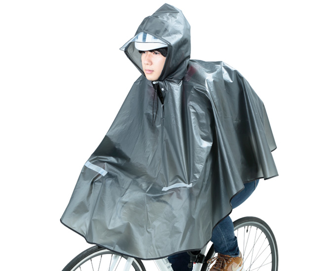 ・クロスバイク、一般車に対応した膝が濡れないレインポンチョ