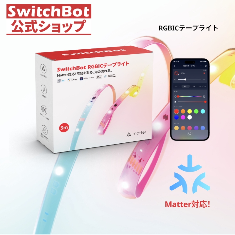 SwitchBot RGBIC LEDテープライト Matter対応 スイッチボット 間接照明 RGB ライト 1600万色 無段階調光調色 Wi-Fi Bluetoothに対応 5m 切断可能 1年保証