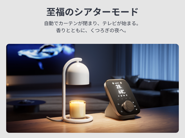 【世界初のスマートキャンドルウォーマー】香りの強さもタイマーもスマホや音声で簡単操作。触れずに空間が整い、くつろぎ時間をスマートに演出。