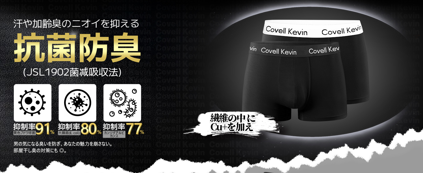 【抗菌防臭】汗や加齢臭のニオイを抑える抗菌防臭素材、抗菌防臭試験済み(JSL1902菌〓吸収法)、男の気になる臭いを防ぎ、あなたの魅力を崩さない。部屋干し臭の対策にも ◎。