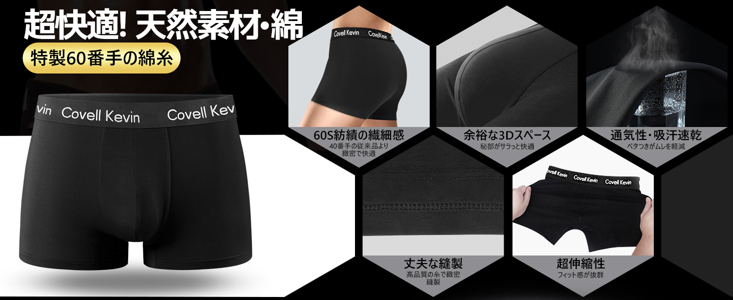 [Covell Kevin] 【4枚組】 ボクサーパンツ メンズ 綿 下着 ボクサーブリーフ 3カラー アンダーパンツ ストレッチ コットン 人気 5代目最新アップグレード