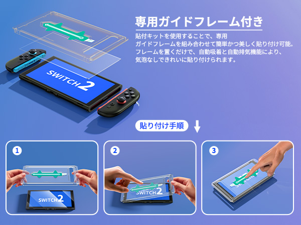 [Switch 2 モデル対応] BJBT Switch2用 強化ガラスフィルム【補助具付けキット】ガラス保護フィルム Switch 2強化ガラス スイッチ 保護フィルム 日本硝子素材