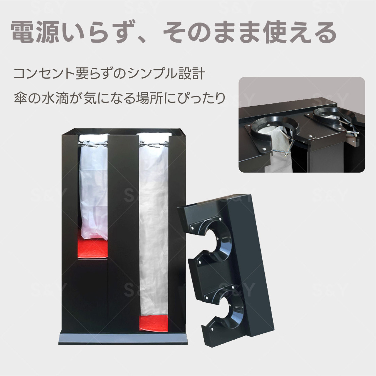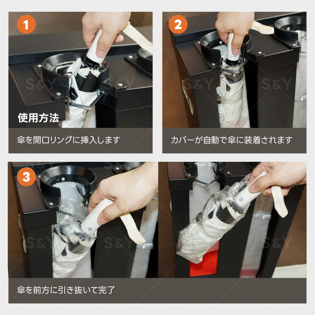 【自動袋装着・防滴機能】傘を差し込むだけで瞬時に袋装着。雨水の滴りを防止し、床を清潔・安全に保ちます。