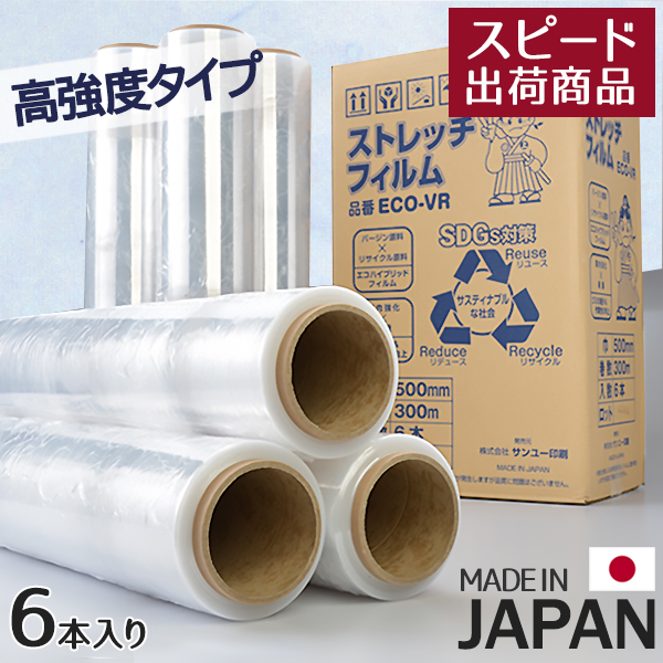 ストレッチフィルム VR 500mm×300m巻 日本製 6巻(6本)入 13μ(13ミクロン)相当品 エコ仕様 全国送料無料