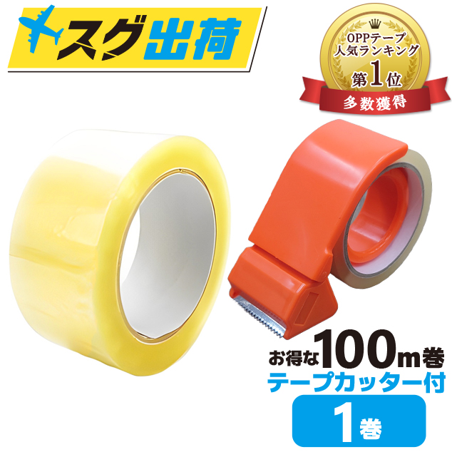 OPPテープ 48mm×100m巻 (透明) 1巻+テープカッターセット 梱包資材 梱包テープ セロテープ 透明テープ