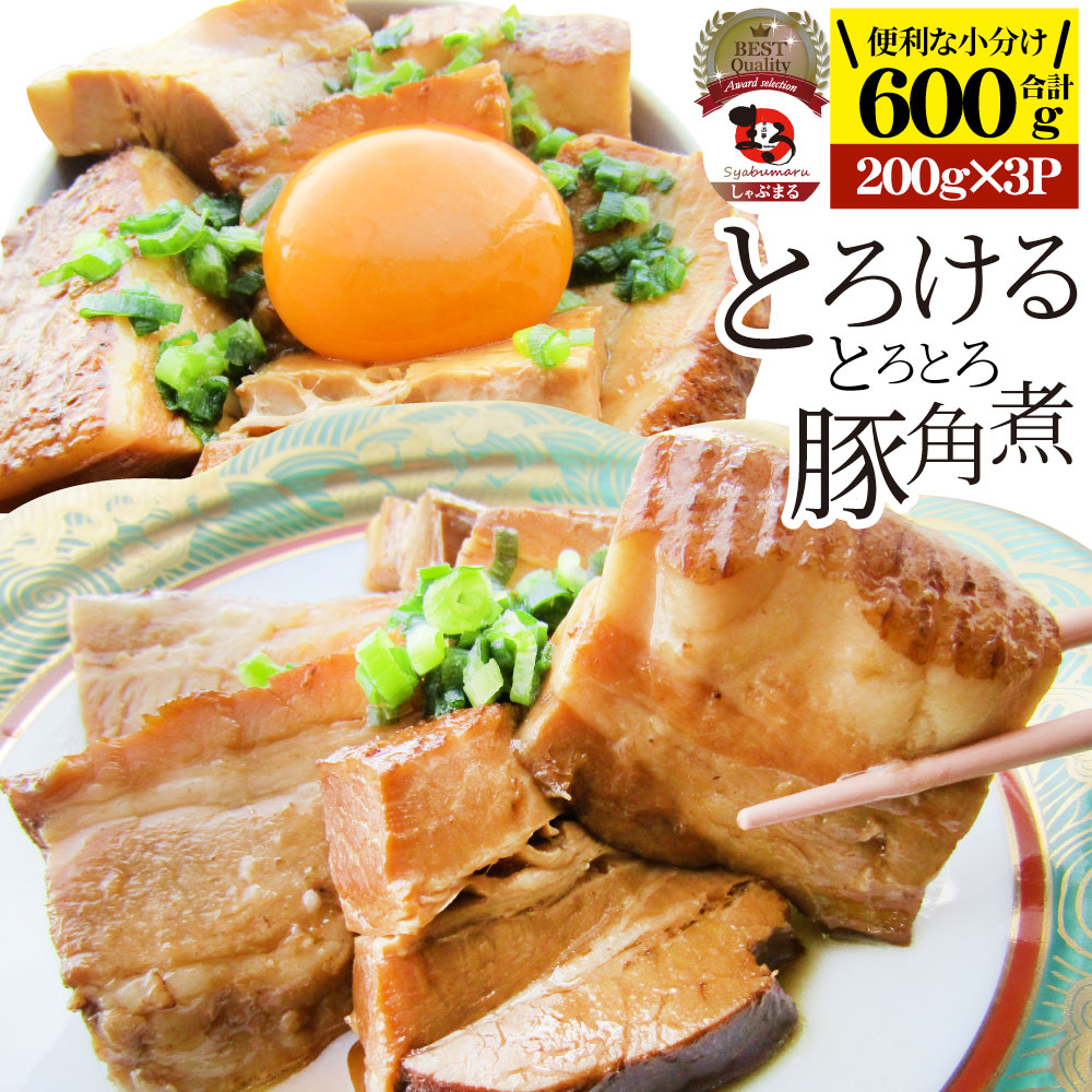 チャーシュー とろける豚角煮 600g(200g×3個) とろとろ 本格 手作り おつまみ 簡単 湯煎 調理済み 惣菜 オードブル 冷凍食品 おかず 弁当 爆買