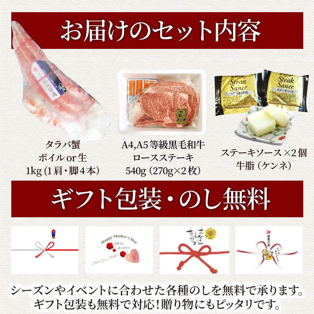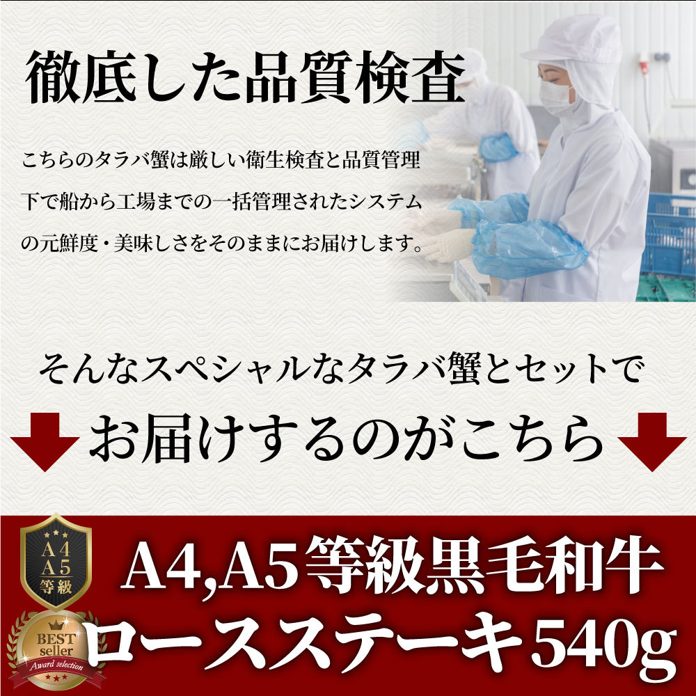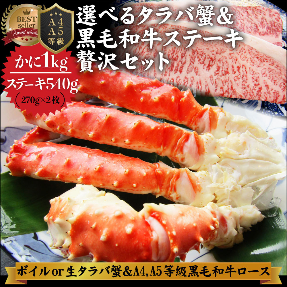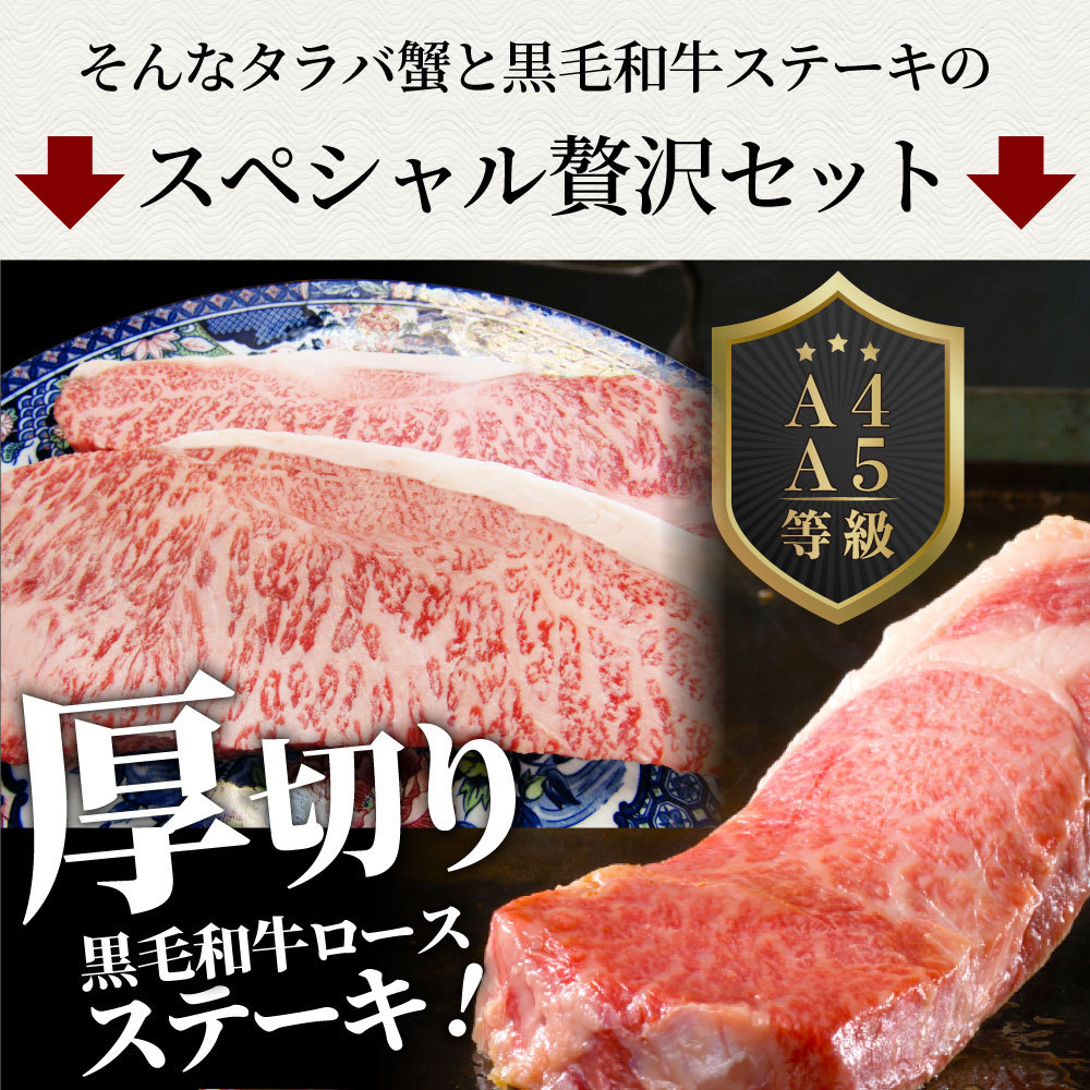 牛肉 肉 かに タラバガニ 特大 1kg & A4,A5等級 黒毛和牛 ロースステーキ 厚切り 270g×2枚 凍眠 テクニカン 和牛 ボイル 生 選べる お中元 爆買