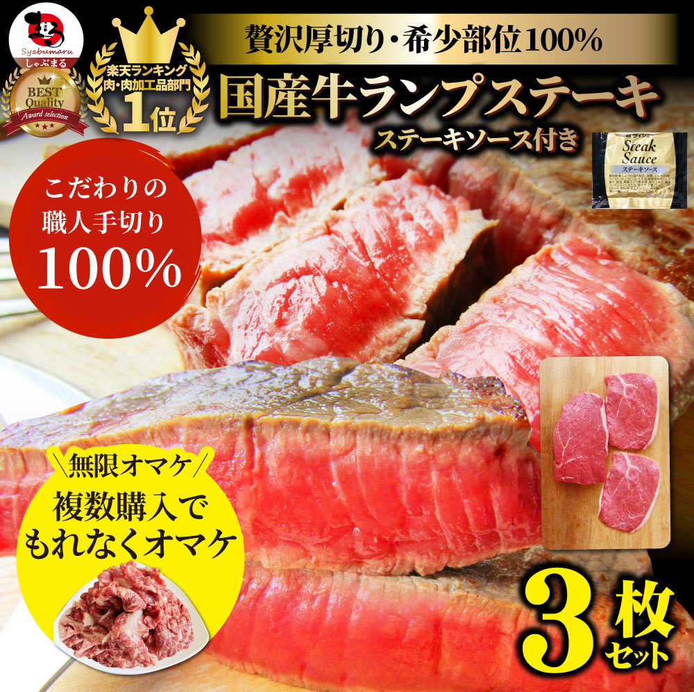 牛肉 肉 国産牛 ランプ ステーキ 赤身 セット 130g×3枚 ステーキソース付き グルメ 母の日食品 ギフト プレゼント あすつく 爆買