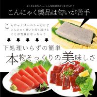 | マンナン漬けまぐろ栄養成分(100gあたり) | エネルギー:58kcal、水分:82.6g、たんぱく質:0.6g、脂質:0.0g、炭水化物:14.0g、灰分:2.8g、ナトリウム:1042mg、食塩相当量:2.6g ※製造者計算値による |