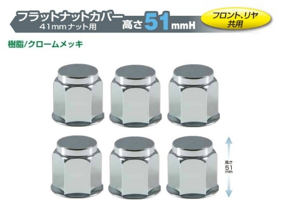フラットナットカバー 樹脂/クロームメッキ 高さ51mm /41mmナット用 6ヶ入 フロント/リア共用(N0.500448)