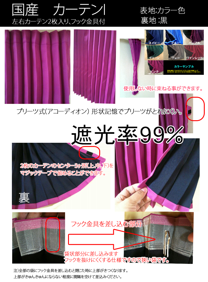(国産品)プリーツ式遮光性カーテンI(センターカーテン)2枚入り
