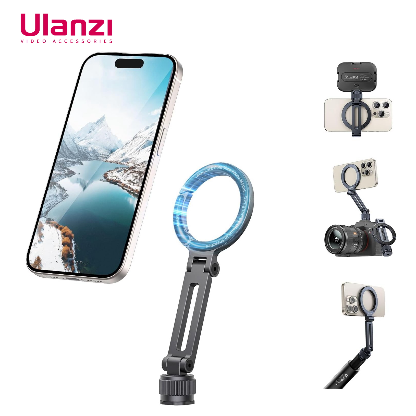 Ulanzi MA07 MagSafe対応 アルミ製スマホホルダー マグネット式 コールドシュー付き 折りたたみ式 角度調整可能 三脚アダプター 1/4インチネジ穴 MagSafeMA-07