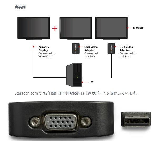 USB-VGA外付けマルチディスプレイアダプタ USB 2.0 A オス-VGA/アナログRGB (高密度D-Sub15ピン) メス グラフィック変換アダプタ 1920x1200 USB2VGAE3