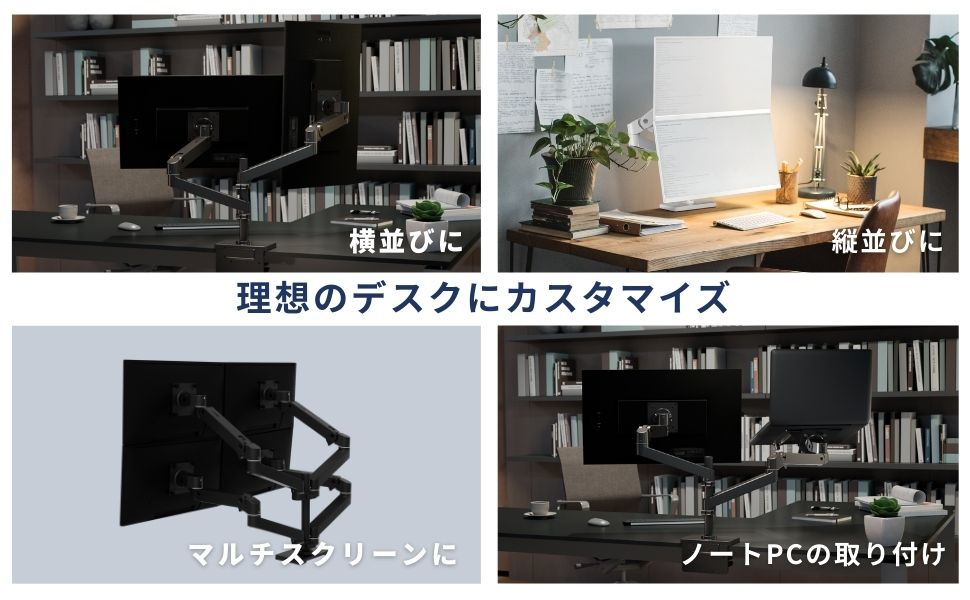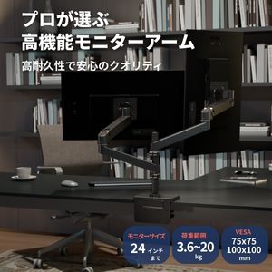 ・モニターの位置、角度、高さの調整が軽い力で自由自在。好きなところでピタッと止まります。・耐久性に優れ、10年保証です。・横並び、縦並びに対応するデュアルモニターアームです。モニターはそれぞれ動かせます。・豊富なアクセサリで3画面、4画面に変更可能です。・台座の回転を180°と360°に変更できます。・従来のLXより軽いモニターを設置できます。24インチまで、1モニター1.8kgから10kgまで/総重量3.6kgから20kgまでに対応、VESA 100x100mm、75x75mm。・ケーブルがまとまり、外観もスマートに。・従来のLXより部品が少なく、モニターの取り付けも簡単になりました。・前後伸縮約65cm、昇降33cm、モニターの縦横回転360°、アーム部分の回転360°、製品本体重量約7.3kg。◆ご注意(免責)>取扱説明書をお読みの上、正しくお使いください。モニターを取り付けてから各部の調整を行ってください。組み立て前の状態では各部の調整はできません。グロメットマウントは別売 (98-729-292) です。◆製品ご購入後のお客様のサポート窓口japansupport@ergotron.com (日本語)ご使用中何かご不明点や不具合がございましたら、こちらのサポート窓口へお問い合わせください。