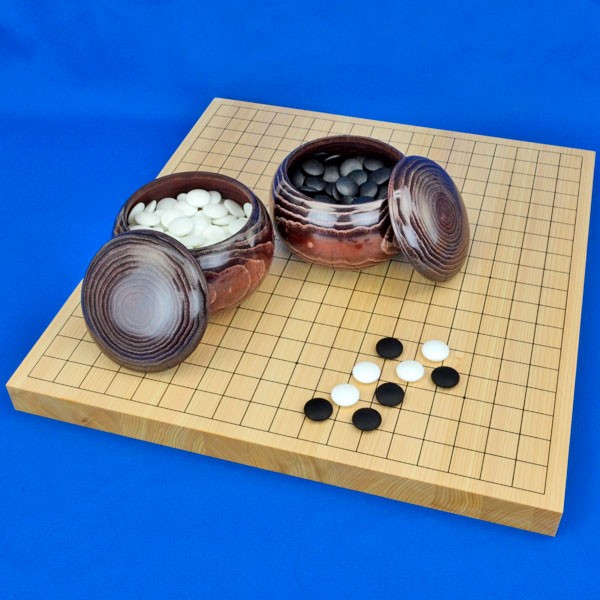 硬質ガラス碁石新生梅は中厚約8mmで、多くの囲碁愛好家の方が実戦的な厚みとして人気のガラス碁石です。栗碁笥は普及木製碁笥として昭和時代から多くの囲碁愛好家に使われてきた定番の碁笥です。