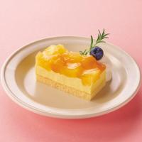 丁寧に焼き上げたスポンジの上にマンゴームースを 重ね、パインアップルとマンゴーの果肉を贅沢に敷き つめました。