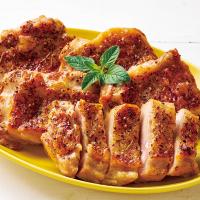若鶏のもも肉をオリーブオイル入りの特製マリネ液に漬け込み、5種類のハーブをトッピングして焼き上げたグリルチキンです。