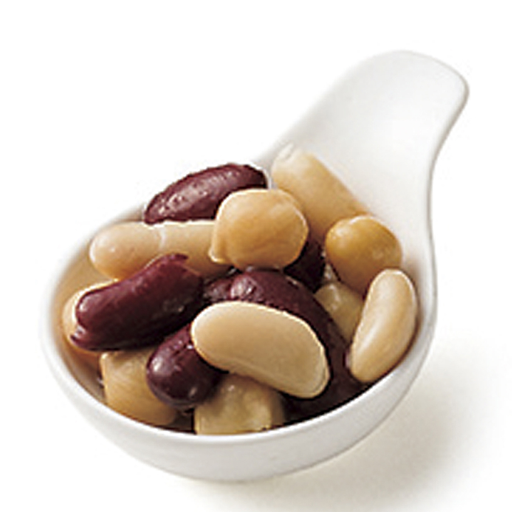 白いんげん豆、ひよこ豆、レッドキドニービーンズをバランスよくミックスしました。そのまま使えて、お料理にプラスするだけで満足感がアップ!
