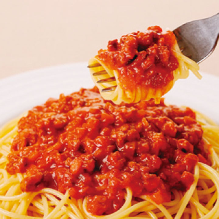 ニュージー産の牛肉を粗びきにして、野菜と煮込みました。牛肉以外の肉は一切使用していない、牛肉たっぷりジューシーなミートソースです。