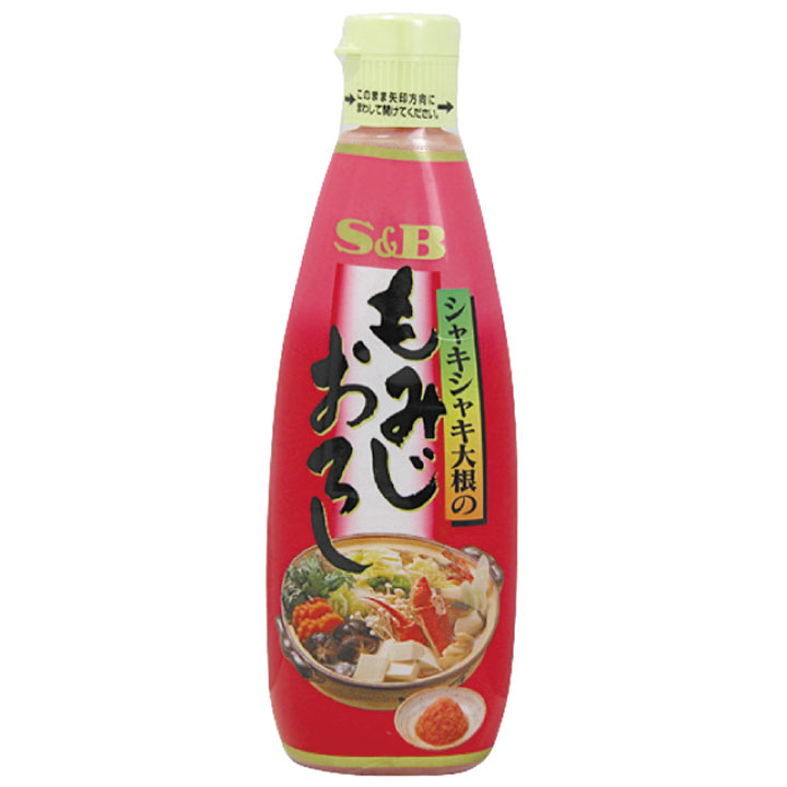 ■原材料:大根馬齢薯澱粉赤唐辛子醸造酢砂糖食塩発酵調味料■用途・調理方法:鍋物冷やしそばうどんつゆ焼き魚■形態:粘体■最終加工地:日本■規格:270g■メーカー名:S&B