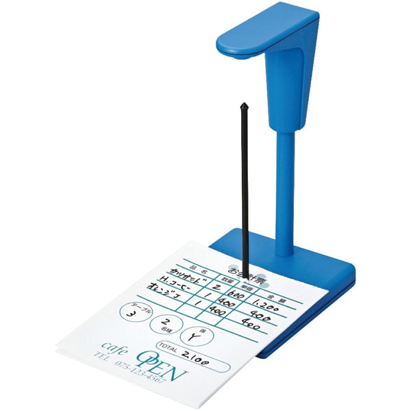 【規格内容】幅65×奥行75×高さ120mm【補足2】再利用【色】青【柄】柄無【商品特徴】ヘッドを押すだけで穴のあいてない伝票も簡単に軸に通すことが出来ます。