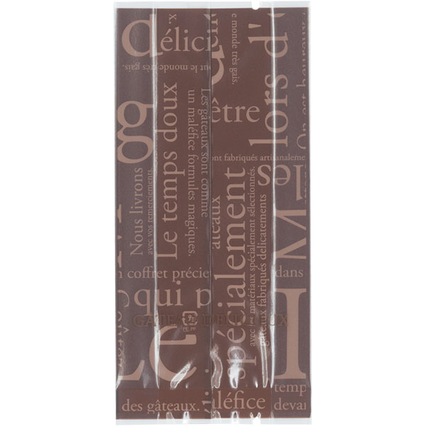 【規格内容】仕上幅70(マチ30)×長さ150mm【厚み】0.065mm【形状】合掌ガゼット袋【材質】KOP20/LD15/LLD30【加工】涙ノッチ(上下)付、8mm×8mmシール【補足1】脱酸素剤対応、乾燥剤対応、ノッチ付【補足2】使い捨て【色】透明茶【柄】柄付【キーワード】菓子袋、ガスバリア袋、焼き菓子袋、焼き菓子用袋、ラッピング、パッケージ、個包装用袋、包材【用途】タルト、マドレーヌ、フィナンシェ【商品特徴】厚みのあるお菓子を、ぴったりと包みます。