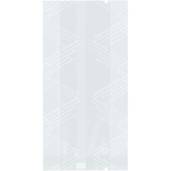 【規格内容】仕上幅75(マチ30)×長さ150mm【厚み】0.07mm【形状】合掌ガゼット袋【材質】マットバリアOPP25/LD15/LLD30【加工】涙ノッチ(上下)付、8mm×8mmシール【補足1】脱酸素剤対応、乾燥剤対応、ノッチ付【補足2】使い捨て【色】白【柄】柄付【キーワード】菓子袋、ガスバリア袋、焼き菓子袋、焼き菓子用袋、ラッピング、パッケージ、個包装用袋、包材【用途】フィナンシェ、タルト【商品特徴】マット調の風合いが高級感を演出します。