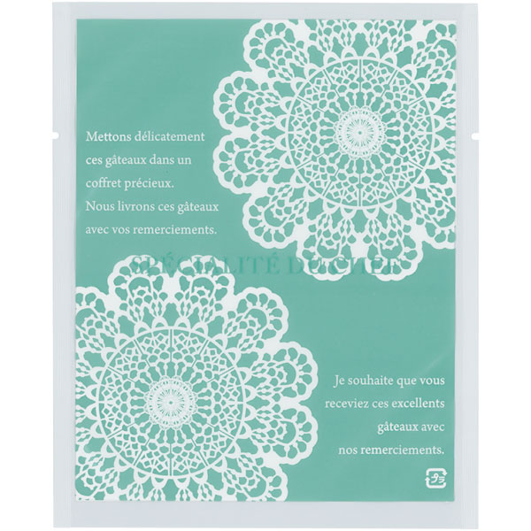 【規格内容】幅130×長さ160mm【厚み】0.06mm【形状】カマス袋【材質】KOP20/LLD40【加工】Uノッチ(左右)付、縦5mmシール【補足1】脱酸素剤対応、乾燥剤対応、ノッチ付【補足2】使い捨て【色】透明緑【柄】柄付【キーワード】菓子袋、ガスバリア袋、焼き菓子袋、焼き菓子用袋、ラッピング、パッケージ、個包装用袋、包材【用途】マドレーヌ、クッキー、パウンドケーキ、焼ドーナツ【商品特徴】洋菓子にぴったりな柄を豊富に揃えました。